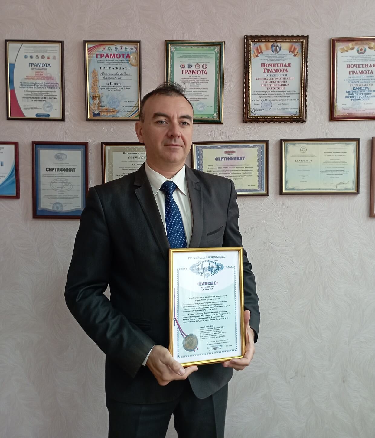 Заведующим кафедрой автоматизации и компьютерно-интегрированных технологий Колесниковым Андреем Валерьевичем совместно с коллегами из Воронежского государственного университета инженерных технологий (ВГУИТ) получен патент на изобретение. Патент на изобретение успешно прошел экспертизу и зарегистрирован в Государственном реестре изобретений Российской Федерации.