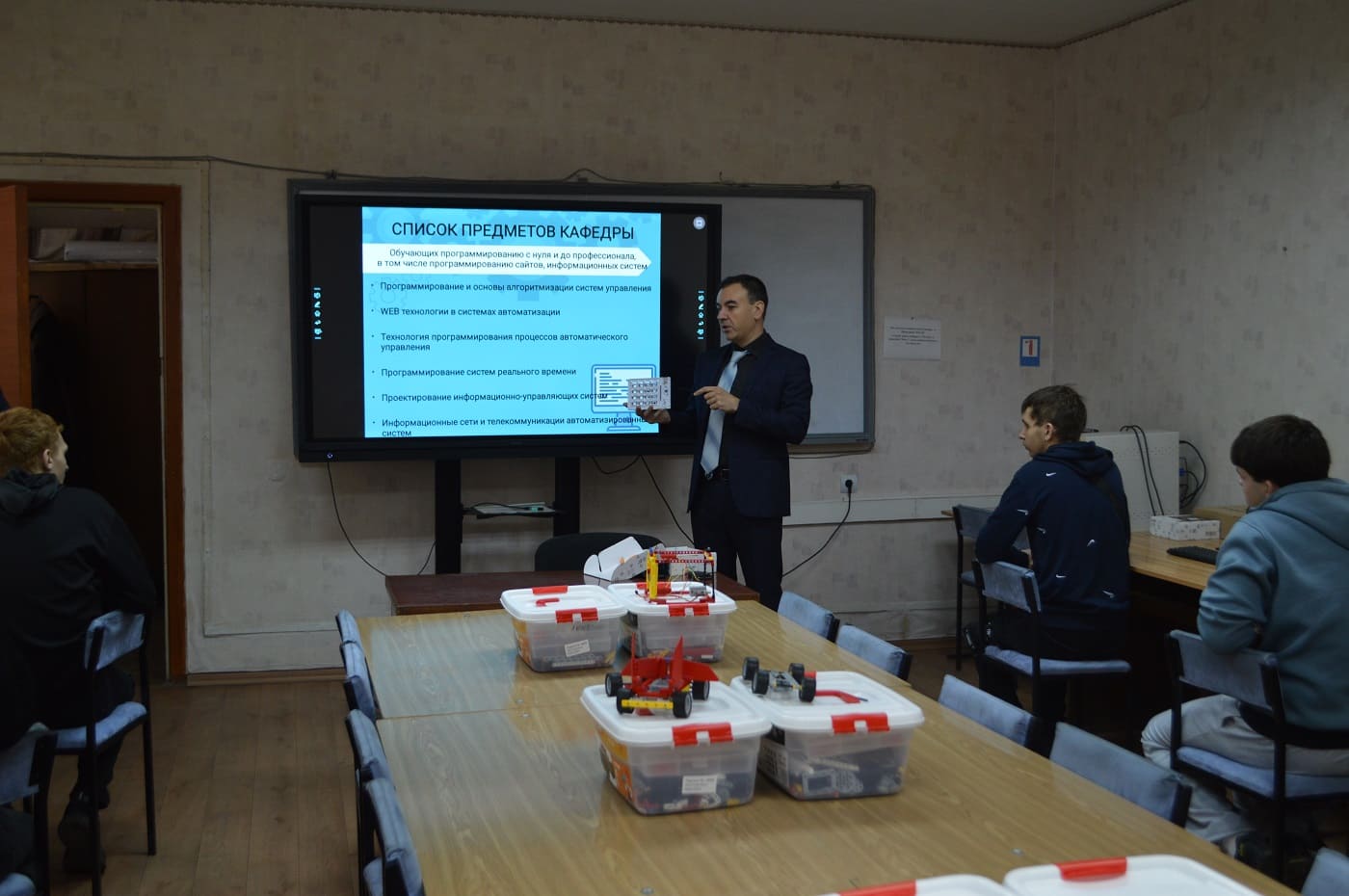 На вводном занятии заведующий кафедрой автоматизации и компьютерно-интегрированных технологий Колесников Андрей Валерьевич рассказал о кафедре, направлении подготовки, лабораториях, мероприятиях кафедры, перспективах трудоустройства. Руководство практикой проводят ведущие доценты и старшие преподаватели кафедры.